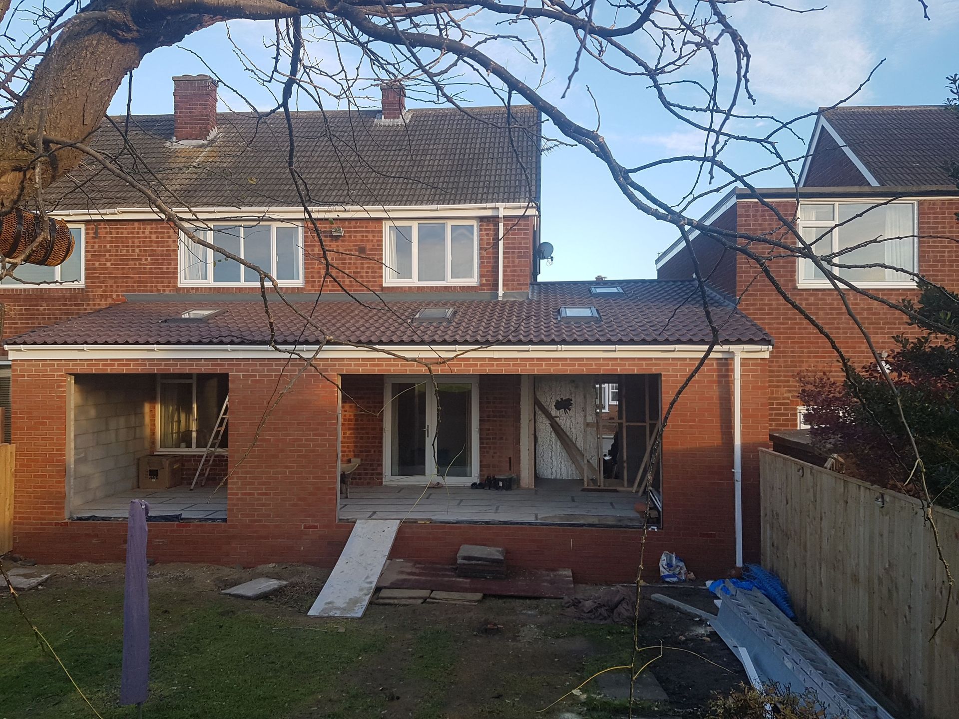 Many homeowners are unlocking their properties potential with added rooms by renovating that old, cold, dirty garage into another homey bedroom, nursery, office or playroom. We can help with this. here is one of our 25 year warrany flat roofs plus extention, almost finished to our usual high standards.